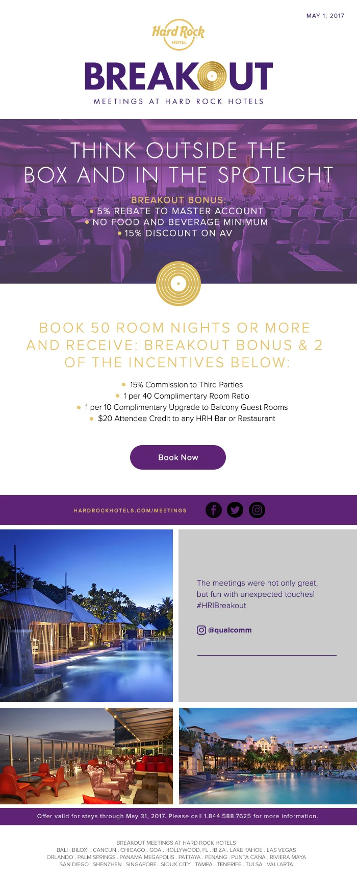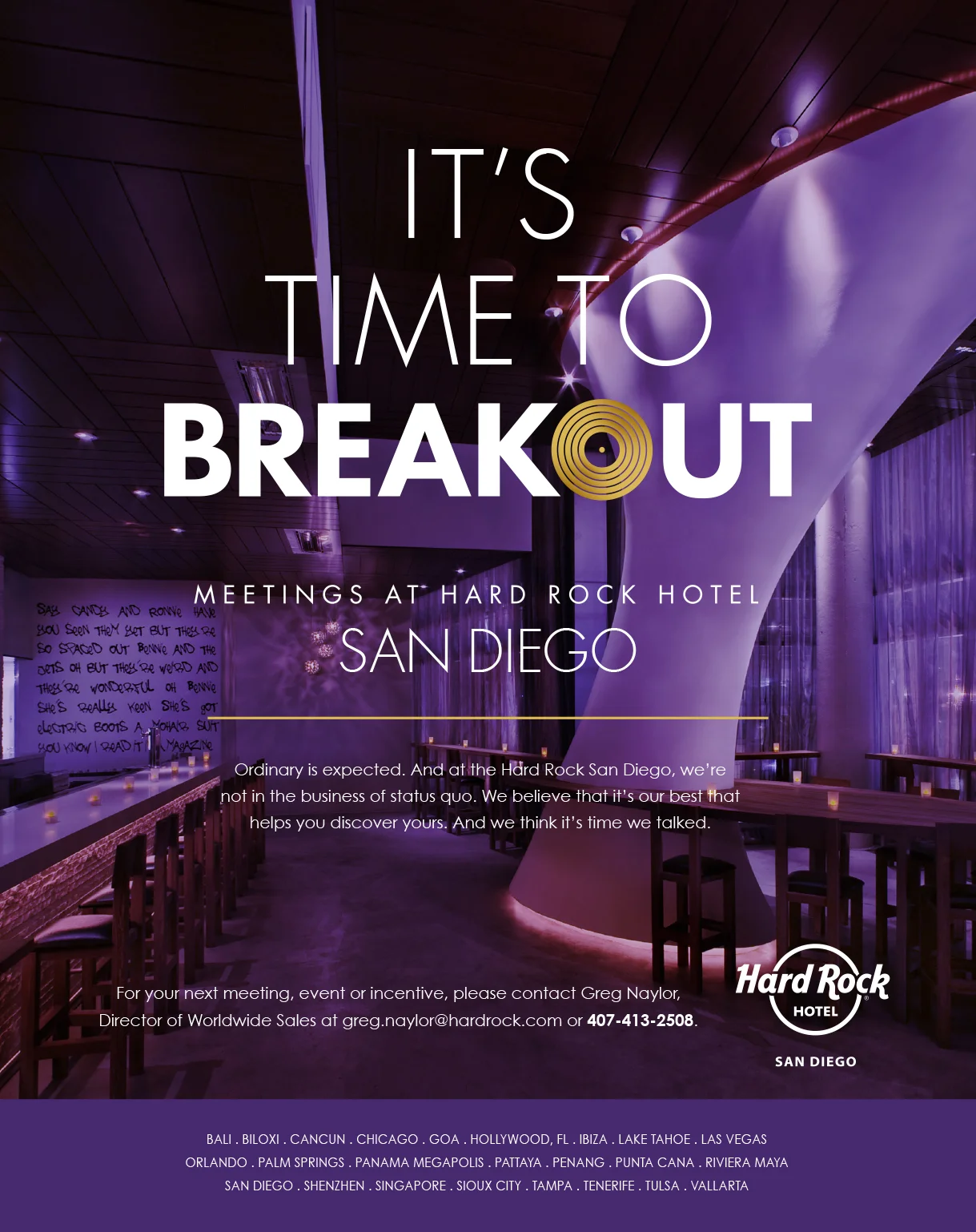 In collaboration with our partner 1 Trick Pony, a comprehensive brand identity package was developed for the Meetings segment for Hard Rock Hotels. The package included Logo identity, Global property directories with capacity charts, print and digital campaigns, property brochures and videos.