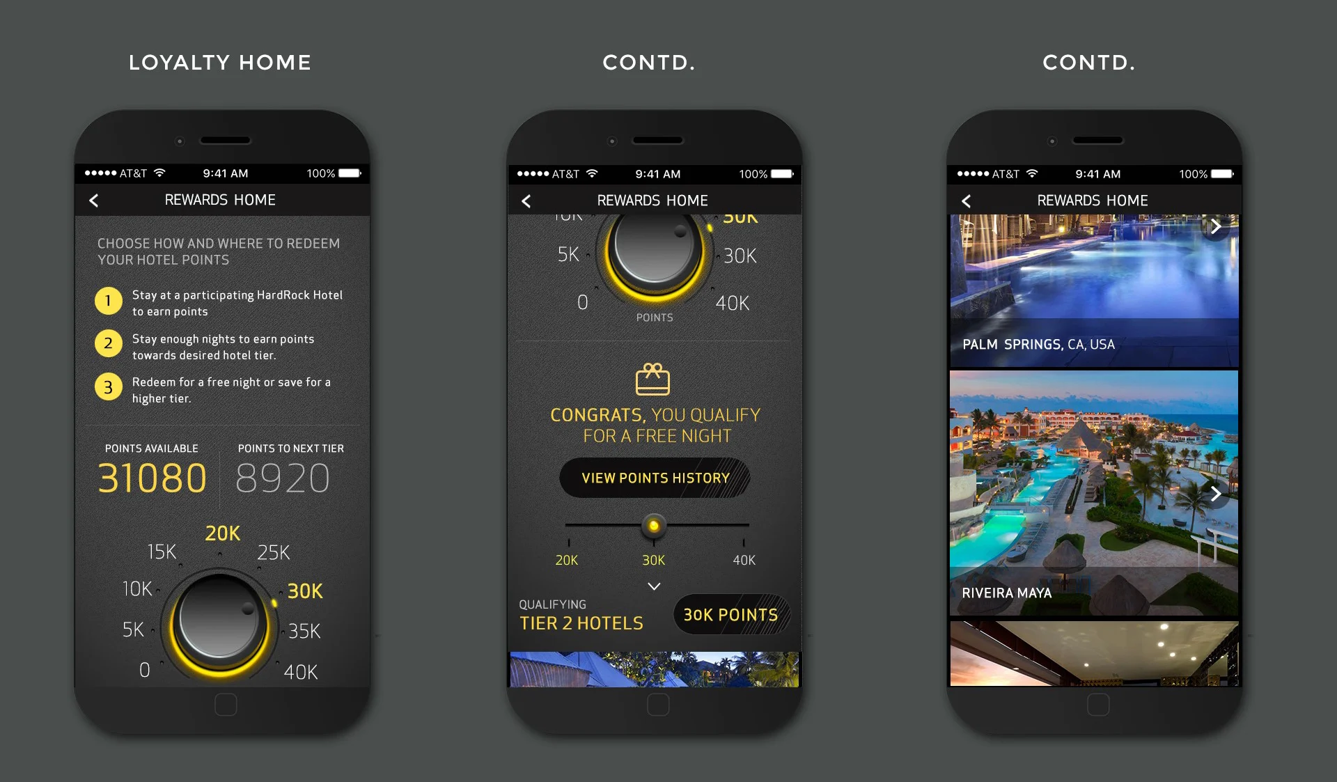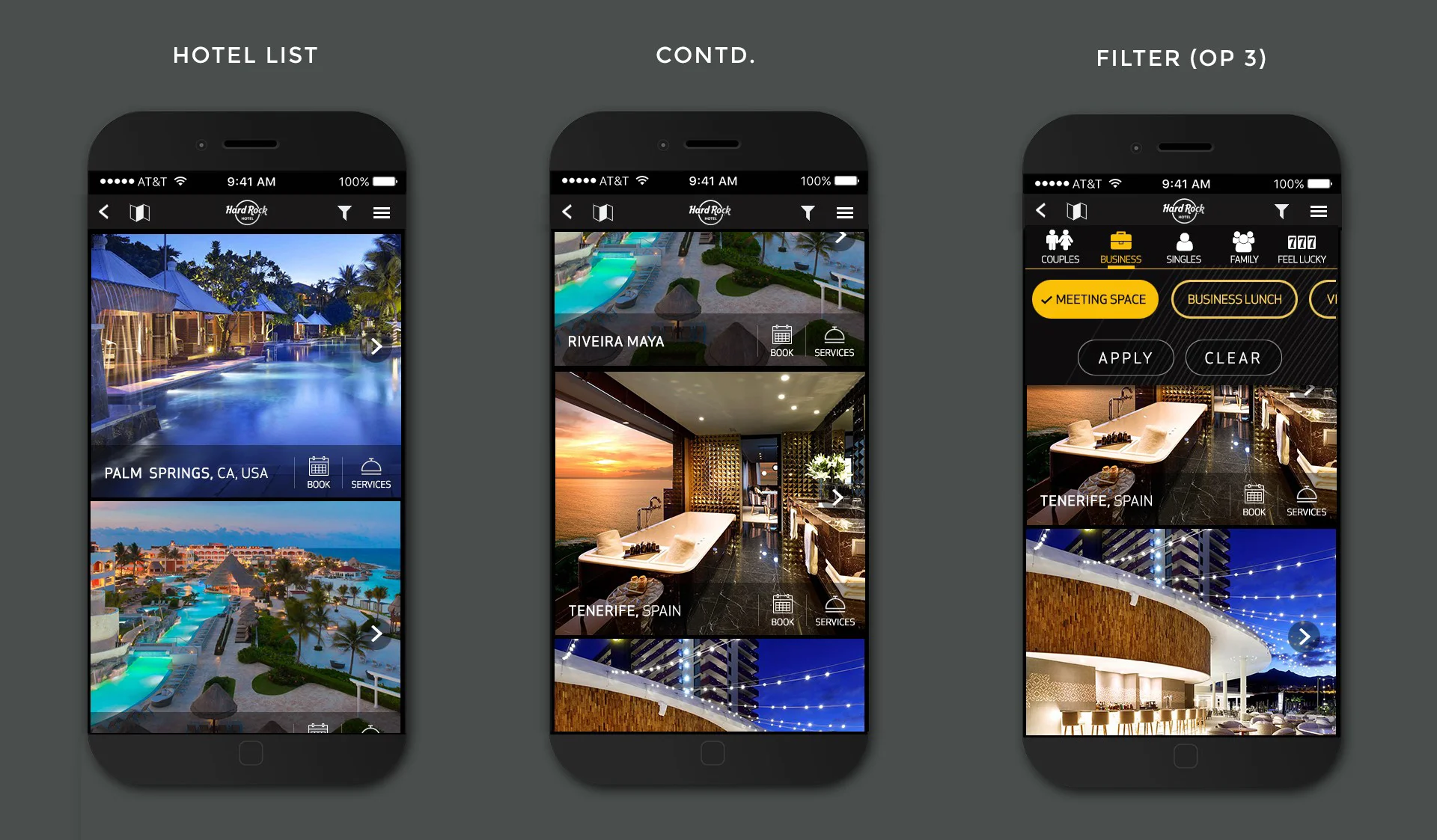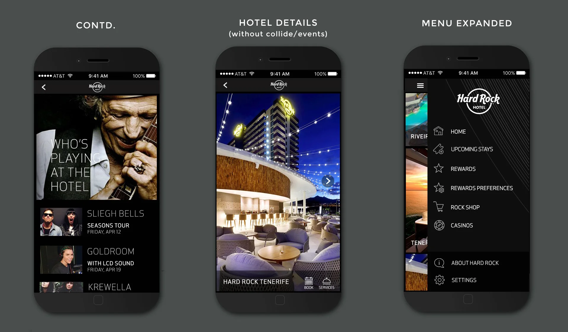 Hard Rock Hotel's new mobile app was developed in partnership with Intellity, who built a custom UX-UI that features the entire global portfolio of hotels and casinos. The interface design is modeled after the In Room Collateral system.